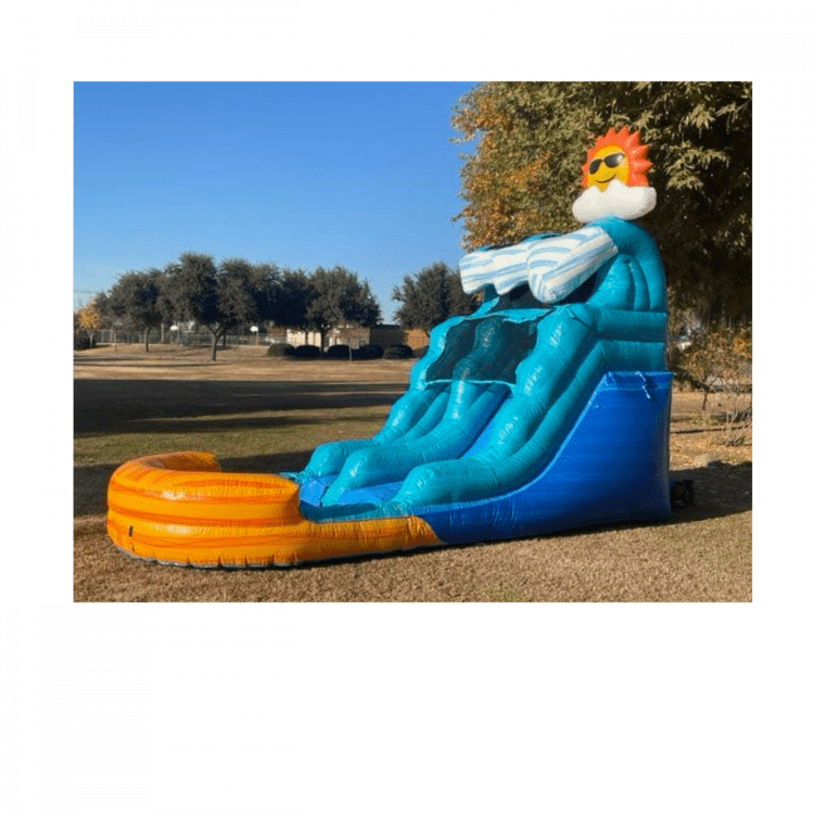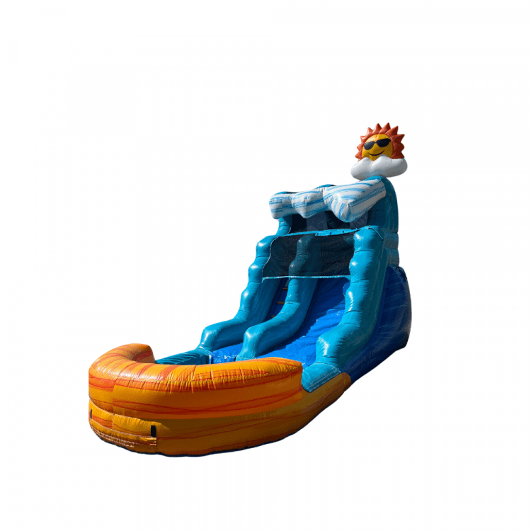 - The Sunny Paradise Water Slide is a vibrant, inflatable attraction that instantly turns any backyard into a tropical oasis. With its bright colors and thrilling slide, it's perfect for kids and adults looking to beat the heat and add a splash of adventure to their day. This rental is ideal for birthday parties, family gatherings, or any event where fun and cooling off are on the agenda. Easy to set up and designed for safety, it's a surefire way to make a splash at your next outdoor celebration.