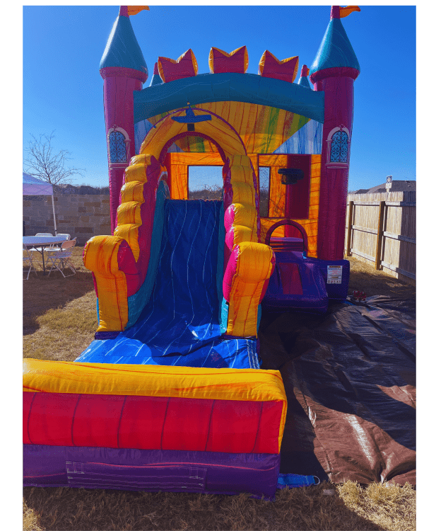 Step into a fairytale with the Princess Castle Bounce House with Slide—a magical blend of enchantment and excitement! This spacious inflatable features a stunning marble design fit for royalty, complete with a grand slide for an added thrill. Young adventurers can jump, climb, and slide their way through hours of fun, all while feeling like true princes and princesses. Perfect for transforming any gathering into a royal adventure fit for a kingdom!