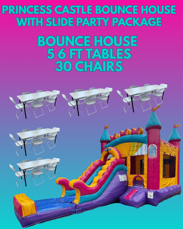 • Unbeatable Value: Bundling your bounce house, tables, and chairs saves you time and money compared to individual rentals.